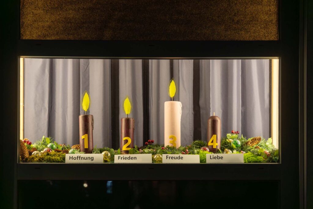 Nach dem Sonntagsgottesdienst wurde das dritte Fenster geöffnet, das vom Kolping gestaltet wurde. Das Thema war der dritte Advent und die Bedeutung der Adventskranzkerzen. Das Thema kam sehr gut an bei der Kirchgemeinde. Die Jubla verkaufte selbstgebackene Guetzli und schenkten Glühwein aus. Das lud zum Verweilen ein.
