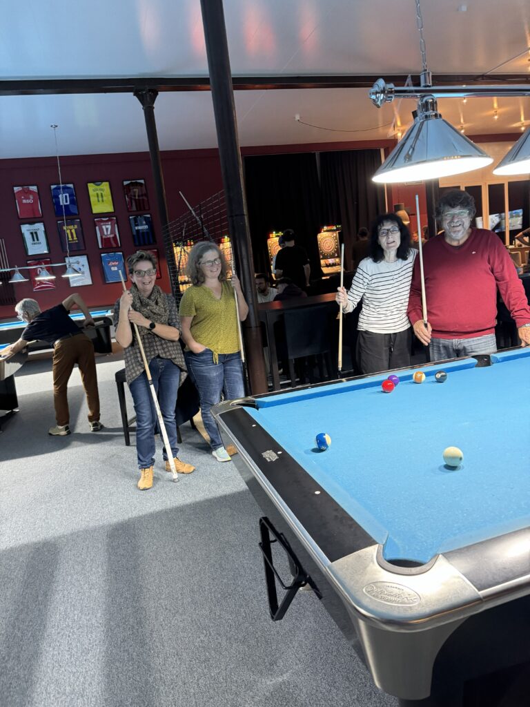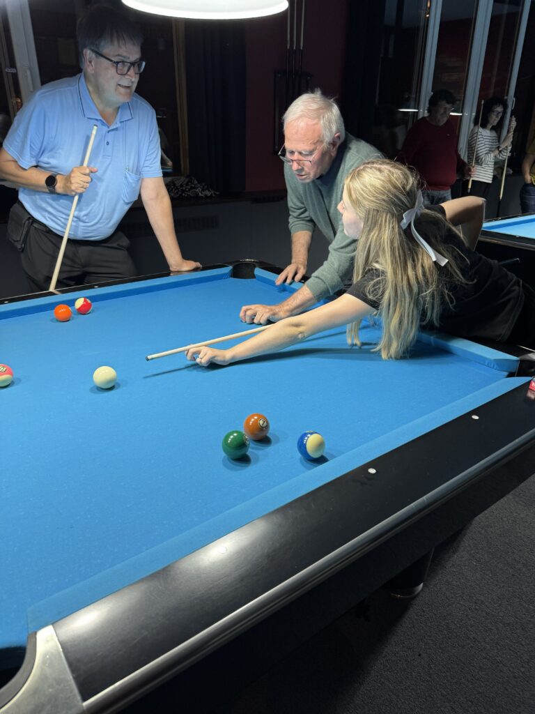 Zehn Interessierte erlebten einen gelungenen Abend im Billard Center Rebstein. Viele von ihnen hatten seit ihrer Jugend kaum mehr Billard gespielt. Nach einer kurzen Einführung durch einen erfahrenen Spieler konnten alle das Gelernte gleich selbst ausprobieren. Mit viel Freude und Einsatz wurden die ersten Stösse gemacht und die Kugeln über den Tisch geschickt. Die Zeit verging wie im Flug, ein klares Zeichen für einen rundum gelungenen Anlass.