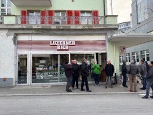 Das Männerweekend fand am 15. und 16. Februar in Luzern statt. Dabei zeigte sich einmal mehr: Es gibt sie noch, die kleinen Brauereien, die nicht nur Restaurants beliefern, sondern auch besondere Nischenprodukte brauen. Im letzten Sommer war ein englischer Brauer zu Gast; Gemeinsam entstand ein dunkles, englisch inspiriertes Bier, das für den Sommer 2024 abgefüllt wurde. Ein schönes Beispiel für handwerkliche Vielfalt und gelebten Austausch.